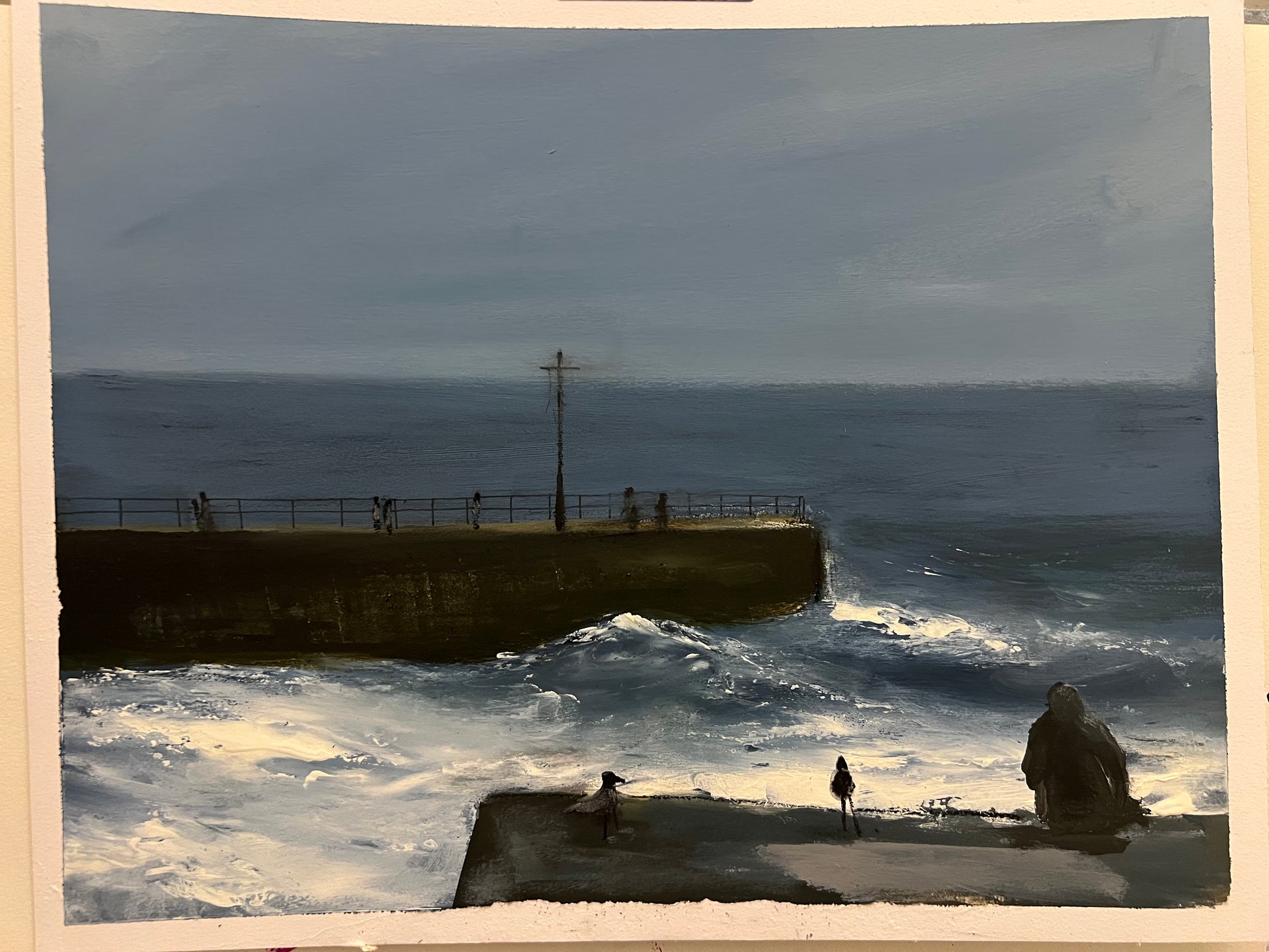 original painting by Welsh landscape artist Porthleven Cornwall acrylic on mixed media board signed and dated both on the front and reverse 12x15”