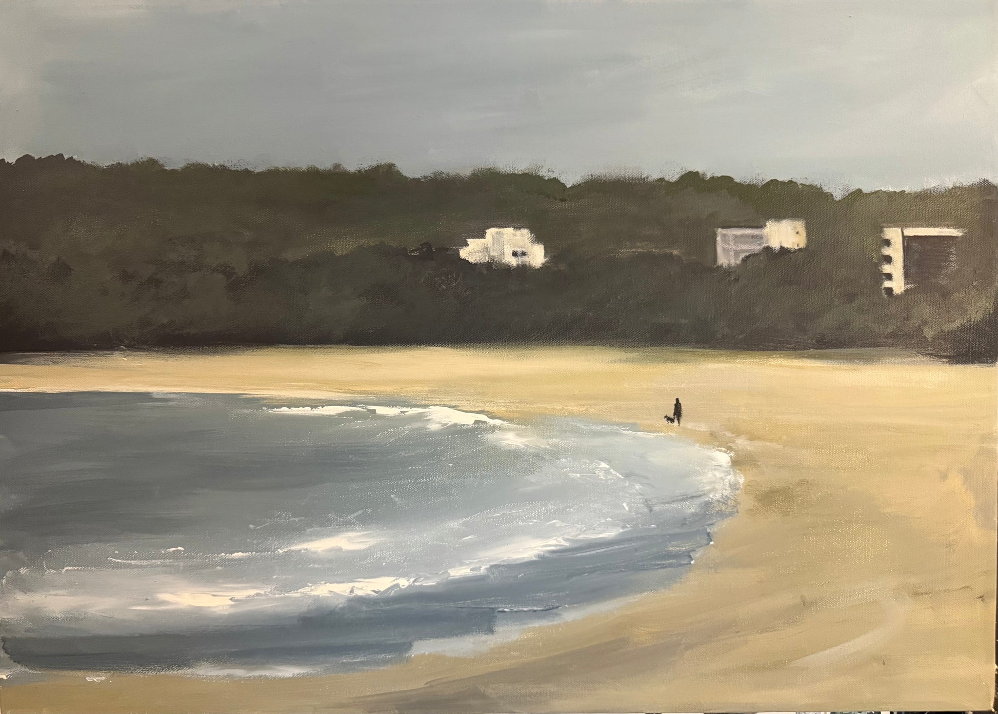 Swansea bay woman and dog original painting on large box canvas