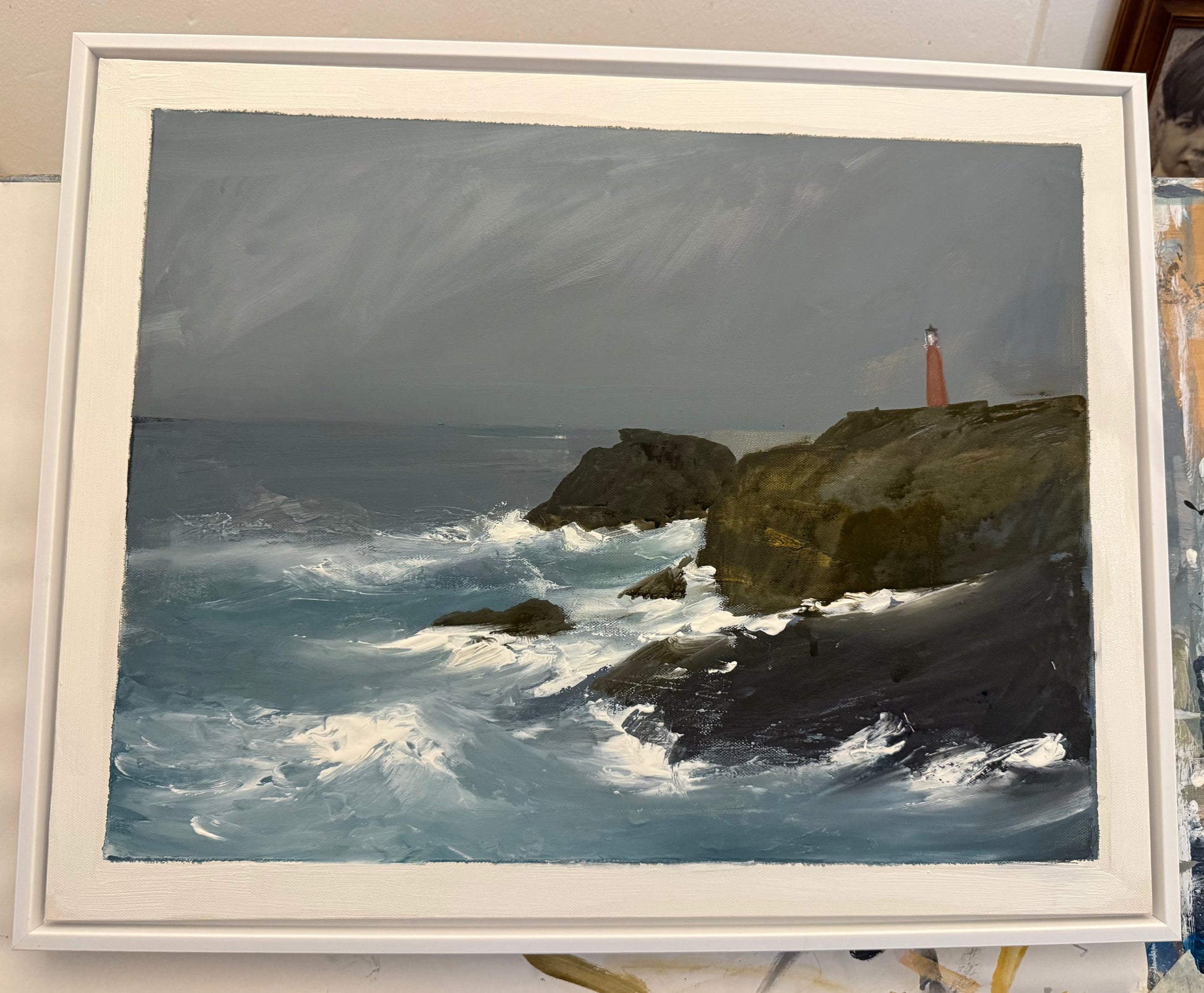 acrylic on canvas framed in a white frame